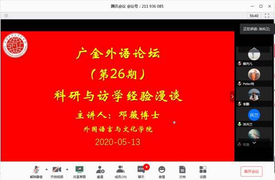 2020年5月13日下午公司邓薇博士做了一场在线“科研与访学经验漫谈”的云讲座,EMC易倍有近一半的专任教师参加了此次讲座。
