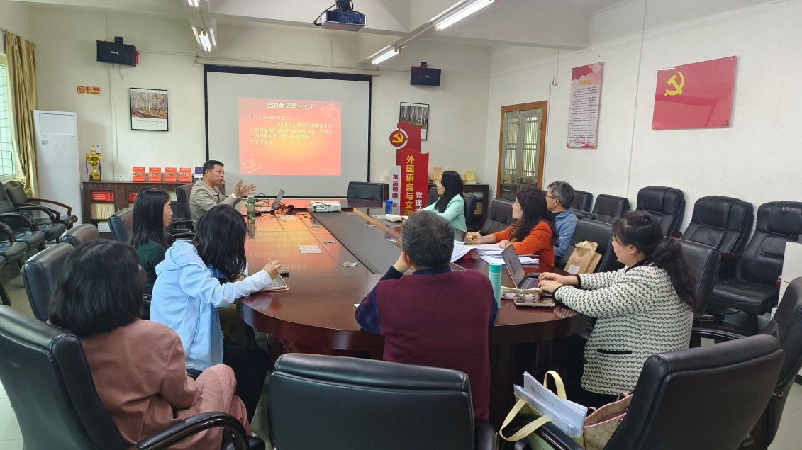 在学术沙龙中,汤新煌老师就目前数字化背景下,财经金融翻译的教学改革提出了新思路,分享了他在教学实践中探索的新方法和新理念,引发了与会师生的广泛讨论与思考。刘晓琴博士就疫情期间中国食品企业的诚信评价体系研究发表了精彩演讲,展示了自己与团队成员就该话题进行的深入探讨,为与会者提供了一个新鲜的视角和思路。杨贵章博士则运用“语境参数理论”探讨了员工翻译实践和机器翻译中出现的问题,并在此基础上提出了零视域、单维视域等新概念。杨博士的研究在某种程度上进一步完善了语境参数理论,同时对财经金融翻译实践提供了有益的启示。