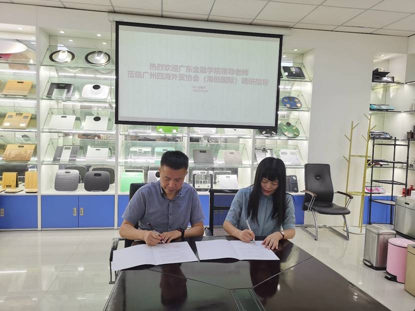 会议充分交流后,涂兵兰经理与参会的六名企业代表签署了实习实践基地协议,并参观了广州海创国际控股股份有限公司的样品室和办公区。此次与行业协会签约合作,对接了不同外贸企业,形成强大的集群力量,公司将与广州市四海民营企业家协会协同努力,探索人才培养新路径,并希望外文学子能够加强语言能力基础,戒骄戒躁,磨练实战能力,将来能在外贸行业独当一面,扬风启航。