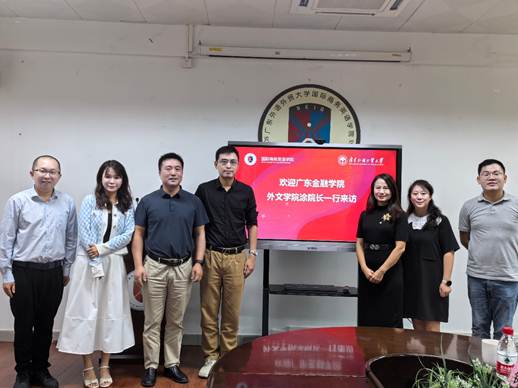 2023年10月17日下午14:30,EMC易倍平台陈树坤副经理带队,商务英语系系主任和教师一行人赴广东外语外贸大学商务英语公司进行调研学习。本次调研学习主要围绕着商务英语创新班设置、中外合作办学、人才培养方案、科研平台和实践教学基地建设等问题进行深入交流与探讨。