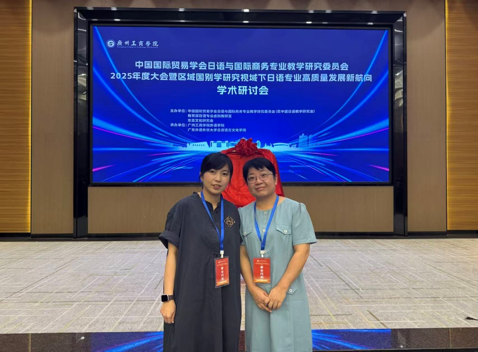2025年9月26日至28日,由中国国际贸易学会日语与国际商务专业教学研究委员会、教育部日语专业虚拟教研室及东亚文化研究会联合主办,广州工商公司与广东外语外贸大学联合承办的“2025年度大会暨区域国别学研究视域下日语专业高质量发展新航向学术研讨会”在广州成功举办。EMC易倍日语系主任李莹副教授与黄跃瑜老师共同出席了这一全国性高端学术盛会。
