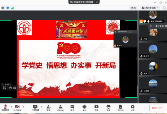 近日,​EMC易倍在腾讯会议平台召开党史学习教育推进会议,会议由党总支书记黄晓莉主持,全体教职员工参加。