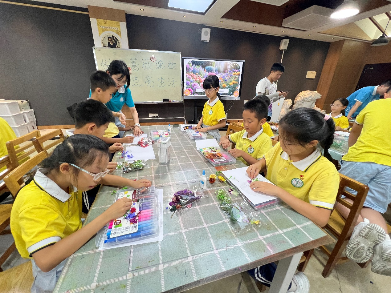 活动第二个环节是压花制作,老员工党员耐心细致地教授小员工压花技巧,让一朵朵蔷薇干花在孩子们的手中绽放出别样的美丽,制作过程中,公司员工党员还分享了关于蔷薇花的故事,让小员工们更加深入地了解蔷薇花所蕴含的丰富文化内涵。