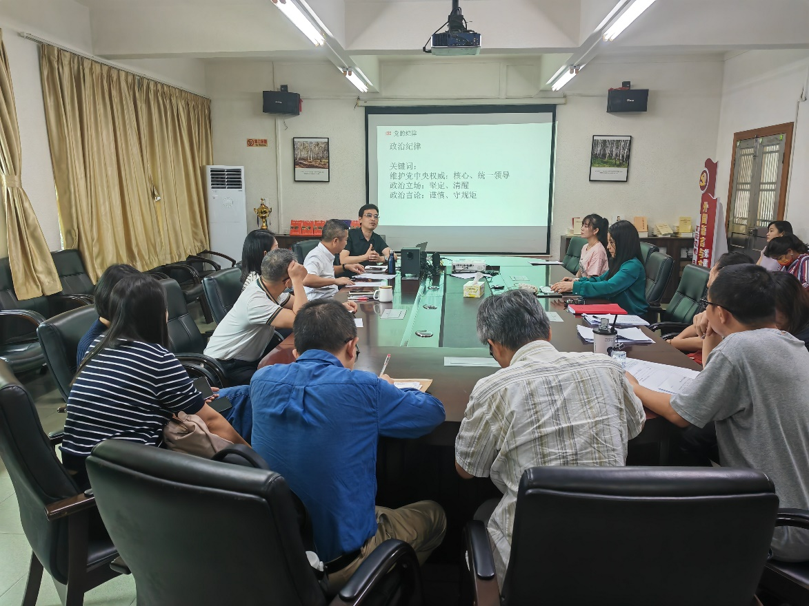 党纪课的主讲人为教工第二党支部书记陈树坤同志,支部全体党员参加党纪课学习。