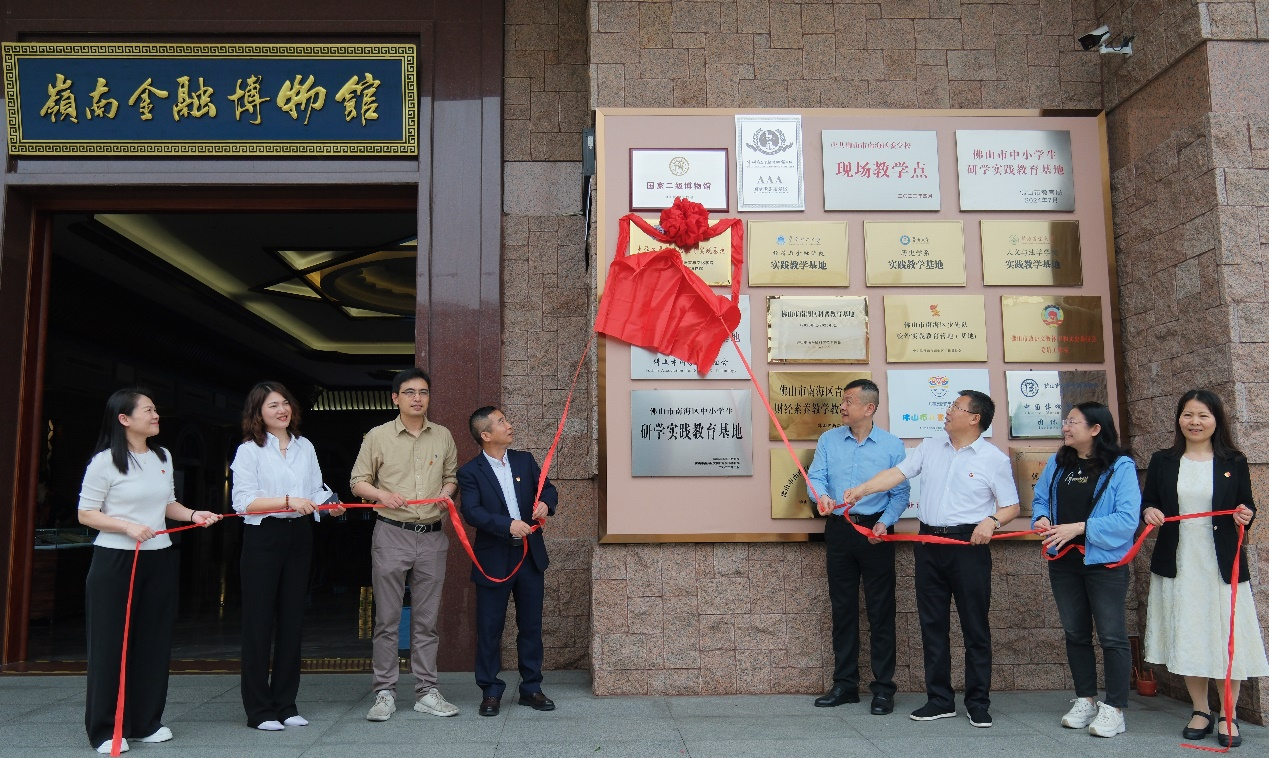 广东省文化和旅游厅博物馆与社会文物处处长颜永树、佛山市岭南金融博物馆馆长丁方忠、副馆长李士英、公司党委书记黄庆雄、副经理陈树坤、洪溪珧、党委副书记王丹等领导嘉宾共同为实践基地揭幕。红绸掀开的一刻,标志着EMC易倍平台与佛山市岭南金融博物馆在思政教育、文化传承领域的合作迈向新高度。