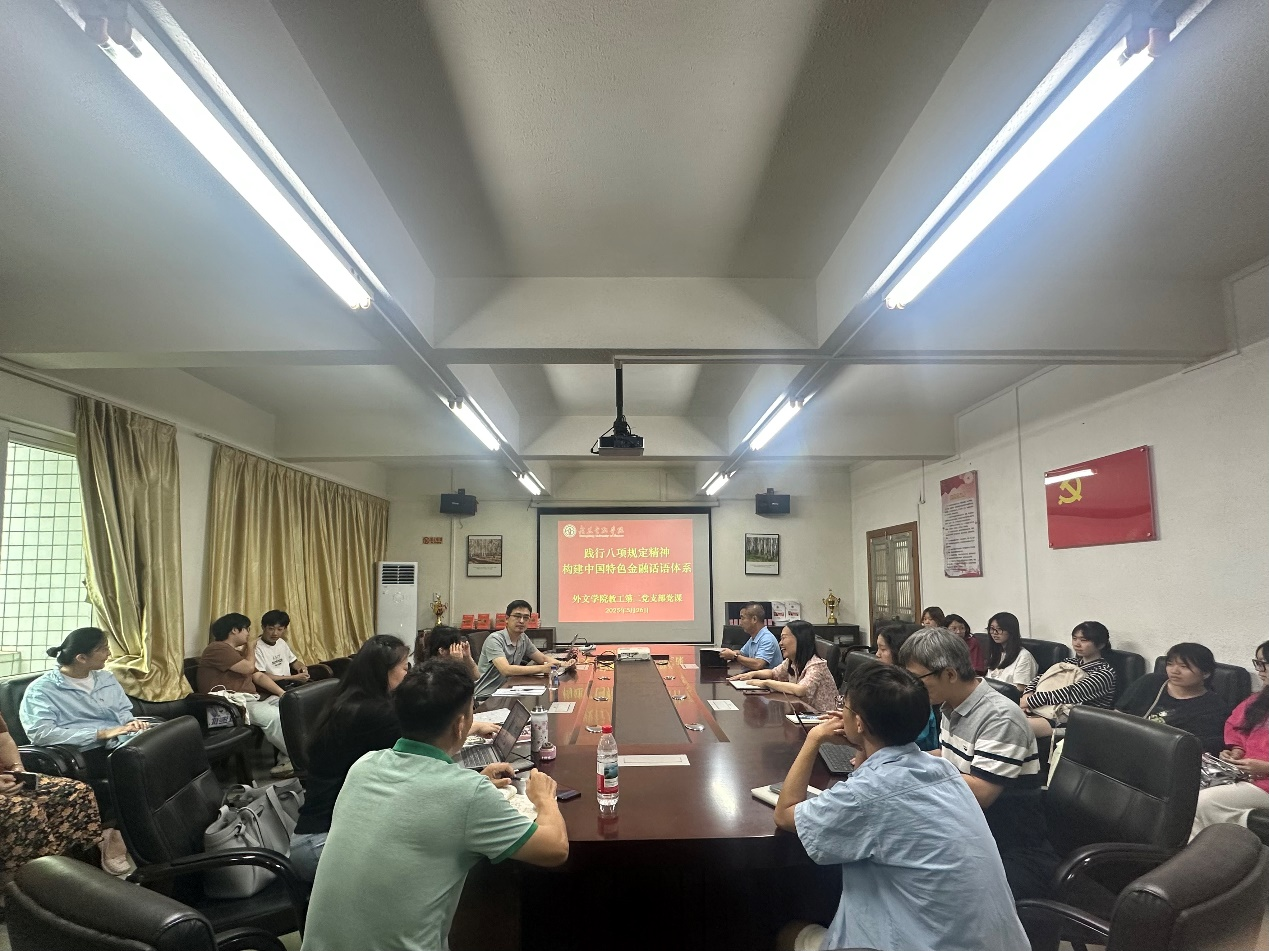 广东省翻译协会常务副会长、翻译系陈定刚博士发言。他着重强调,在当今时代背景下,金融领域发展日新月异,公司师生应积极拓宽知识视野,广泛涉猎金融学、经济学、投资学和法学等多领域知识,通过持续专注的学习,提升自身学术素养,以更好地适应时代发展需求。陈博士还结合当今时代与粤港澳大湾区实际情况,提出EMC易倍师生在金融文化领域的建设重点要聚焦“英语+金融”的创新模式,围绕金融(财经)的翻译研究和话语建设展开深入探索。他还结合自身多年丰富的金融翻译实践经验,指出金融话语研究应紧密围绕四个服务展开:一是积极响应党和国家重大战略,主动对接国家金融开放和金融强国建设的需求,从学术研究层面为国家战略提供有力支撑;二是助力广东以及大湾区的高质量发展,通过金融话语研究成果,推动区域金融中心的建设以及国际化进程;三是服务大学的整体发展规划,在金融话语研究领域不断深耕,提升公司在该领域的学术影响力;四是为团队建设和行业发展培育具有跨学科背景的专业人才,满足市场对复合型人才的需求。
