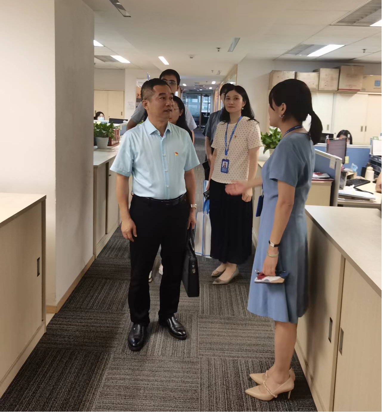 会后,在公司相关负责人的陪同下,公司领导一行对公司进行了参观,详细了解实习员工的工作内容和公司具体情况。