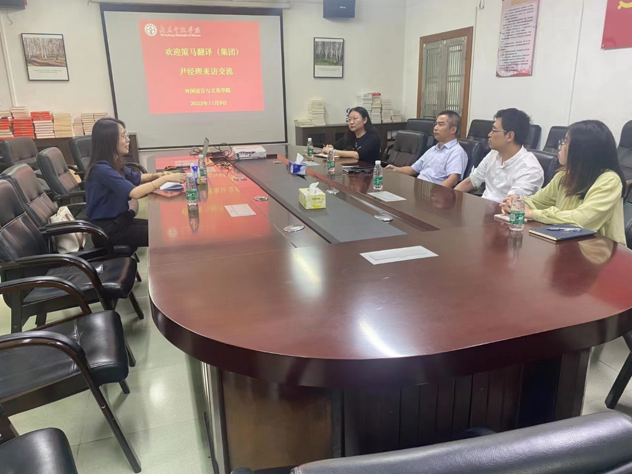 座谈会上,黄庆雄书记和陈树坤副经理分别介绍了公司的团队建设、团队力量和人才培养方向以及公司对翻译人才、团队培养的一系列举措和相关需求。黄庆雄书记表示,希望与策马集团建立多层次的校企合作,在实现人才协育的同时,双方共享共赢发展。策马集团尹利珍总监对EMC易倍的翻译人才培养理念表示高度认可,并介绍了策马集团发展历程以及集团的翻译和培训业务。她表示,策马愿发挥自身所长,为EMC易倍的同学们创造实习、实践机会,与公司一道共同培养优质的专业人才。随后,尹总监向公司2024届毕业生就毕业招聘过程中的有关问题进行宣讲。