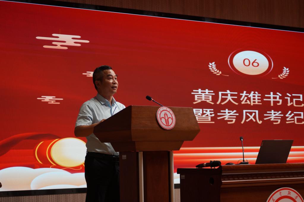 会议最后由公司党委书记黄庆雄作就业暨考风考纪动员。他强调,就业是同学们实现人生价值的重要阶梯,是逐梦青春、成就未来的起点。同学们首先要树立正确的职业观、就业观和择业观。要不断学习,提升自己,更要坚定信心,勇敢追梦。针对考风考纪问题,他要求同学们端正学习态度,认真备考,遵规守纪,严于律己。希望各位同学能够从我做起,诚信应考,共同营造一个诚信的考试氛围。