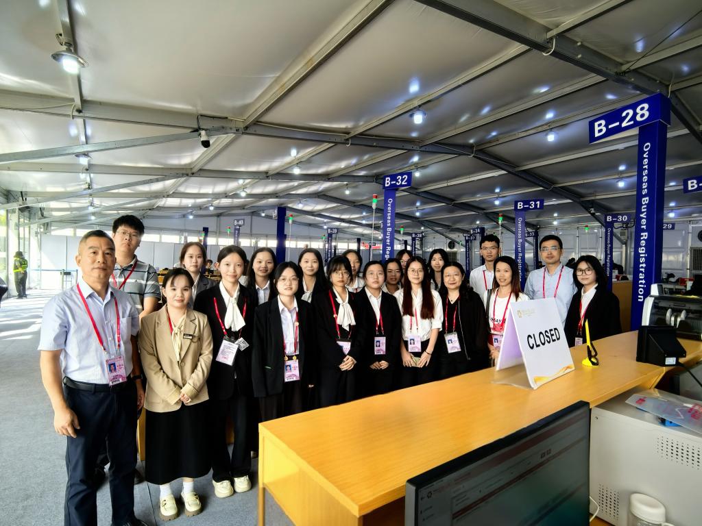 本届广交会2022级员工实习实践服务团队,主要负责境外采购商办证、展厅咨询、室外导向、内勤管理等多个岗位的工作。在广交会展馆现场,公司领导详细询问了同学们的工作内容、遇到的挑战以及个人的成长和收获,对同学们踏实肯干、吃苦耐劳的工作态度以及出色的综合实践能力给予高度评价。同学们纷纷表示,能够参与到广交会这样的国际盛会感到非常荣幸和自豪。在这里,他们不仅提升了专业技能,还增强了沟通能力和团队协作意识,真切地感受到了在跨文化背景下进行国际交流的魅力。同时,他们也深刻体会到了责任与担当的重要性,表示将不负公司、公司和社会的期望,不断努力学习和提升自己,为广交会的成功举办作出应有的贡献。