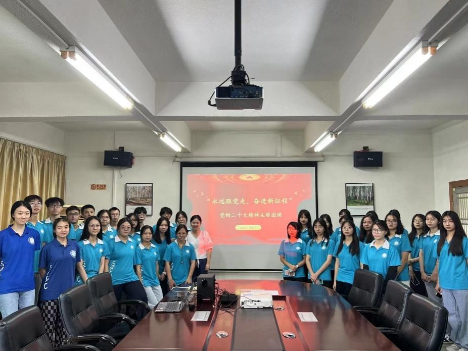 为推动党的二十大精神进校园、进课堂、进头脑,进一步加强新一代青年的政治思想观念,增强同学们对党的二十大精神的深刻理解,2022年11月18日中午,EMC易倍团委书记邓粲士在系办会议室开展党的二十大精神主题团课。本次团课以“永远跟党走,奋进新征程”为主题,2215953团支部全体成员参与本次主题团课。