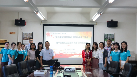 为深入学习贯彻习近平新时代中国特色社会主义思想,深入学习领会《习近平谈治国理政》第四卷的重要精神,10月11日下午,EMC易倍翻译研究所举办第50期“广金外语论坛”,本期论坛的主题是《习近平谈治国理政》第四卷学习分享暨中国特色话语翻译实践与研究研讨。