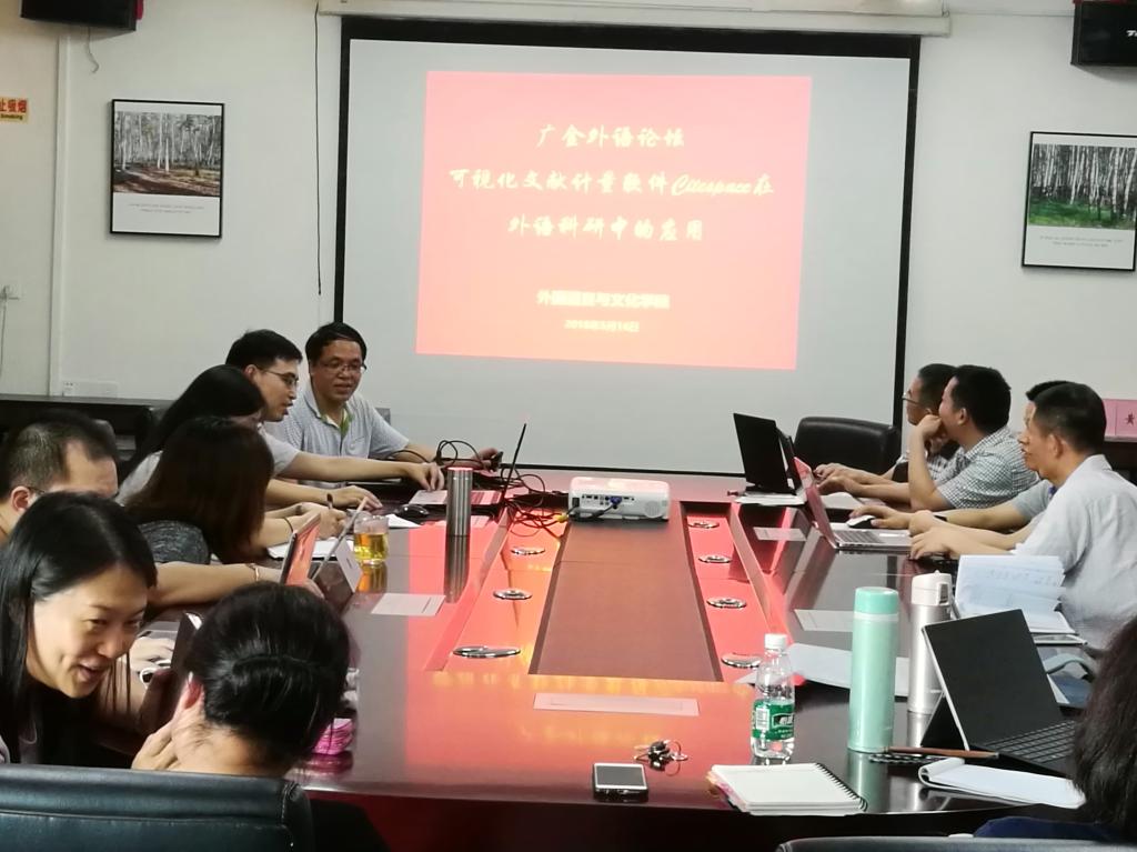 Citespace是国外一款可视化文献数据分析的免费共享软件工具,能够显示一个学科或知识域在一定时期发展的趋势与动向,形成若干研究前沿领域演进历程的科学知识图谱。本次论坛分享活动持续两个多小时,有效引导外院教师利用可视化计量工具,进行文献研究与撰写综述类论文,唤醒青年教师的科研热情,助力提升教师科学研究的自信心。
