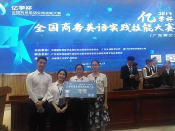 10月26日至27日,2019年“亿学杯”全国商务英语实践技能大赛(广东赛区)竞赛在华南理工大学广州公司成功举行。经过激烈角逐,EMC易倍商务英语专业2017级的陈家宝、连晓玲和2016级的李淑华三名同学组成的代表队,凭借扎实的语言基础、全面的商务英语实践技能,发挥稳定、表现出色,喜获团体二等奖。陈家宝同学在60名选手中脱颖而出,依靠出色的个人能力,斩获全场唯一的“优秀选手”奖。公司选手的优异表现获得了组委会、教指委和各兄弟院校老师们的一致好评。