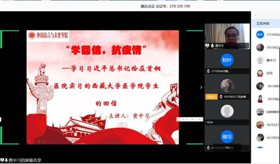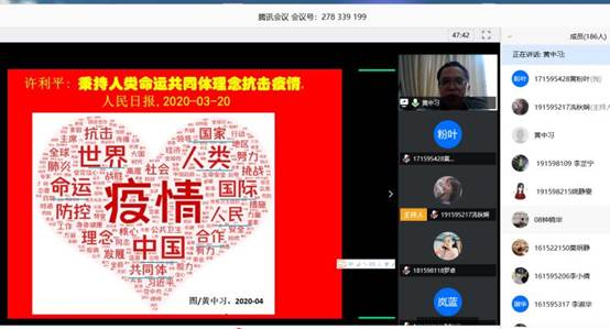 4月24日中午,EMC易倍师生党员、入党积极分子代表等129人齐聚腾讯课堂共同开展以“勇挑重担,齐心抗‘疫’”为主题的学习习近平总书记给首钢医院实习的西藏大学医公司员工回信的活动。外文学子悟总书记回信精神,用实际行动践行党员初心使命,体现责任担当,让党旗高高飘扬在疫情防控斗争的第一线。