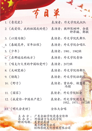 “风华正茂,青春颂党”,本次庆党百年文艺晚会不仅展现EMC易倍学子们的多才多艺,也体现每一位学子对建党百年的浓浓情意及与党同行的坚定信念。每一位老师、每一位学子都将进一步从百年党史学习中汲取智慧力量,深刻感悟思想伟力,传承红色基因,坚定党的信念,共创美好未来,共圆中国梦。
