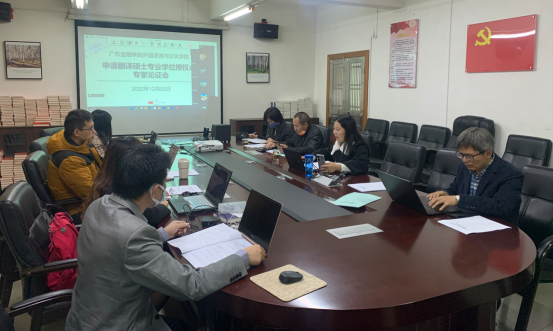 2022年12月2日上午,公司举行申请翻译硕士(MTI)专业学位授权点专家论证会。公司邀请到中山大学王东风教授、广东外语外贸大学赵军峰教授、广州大学肖坤学教授以及公司董事长雍和明教授,通过在线会议的方式,对申硕工作小组此前形成的申报材料“会诊”“把脉”,同时也邀请到公司研究生处卿前龙处长、郭丽梅副处长和陈晓莉老师莅临公司会议室作线下指导。
