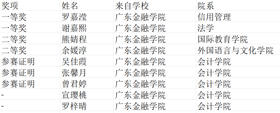 公司共有9名员工参加第二届“CFAINS杯”全国金融英语能力大赛-词汇大赛,其中4名同学获得奖项。信管公司罗嘉滢、法公司的谢嘉熙获得一等奖,国教院的熊婧程和EMC易倍的余媛淳(211598221)获得二等奖,获奖同学有资格获取中国金融分析协会颁发的金融英语水平证书。