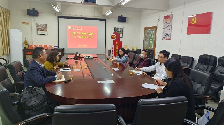 公司涂兵兰经理、洪溪珧副经理、陈树坤副经理、甘容辉副经理以及系部主任刘传江、汤新煌、温穗君、邓薇、钟泽楠、解敏先后就OBE理念的人才培养模式、MTI申报、校区延申管理、大学英语分级教学改革、学科比赛组织和认定、实验教学中心建设、教师专业发展等议题向广师大领导请教经验。徐玲经理、杨伟光书记、王永建副经理、王琴琴副书记分别对相关问题做了耐心详细解答。