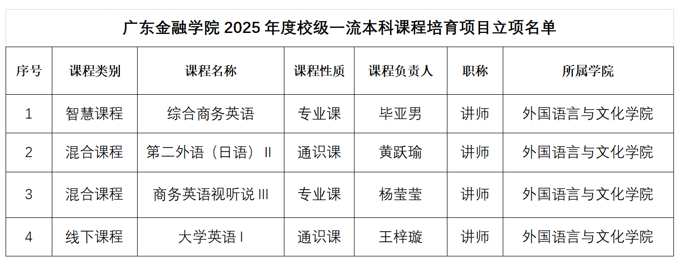 为贯彻落实广东省教育厅《2025年本科公司产品工作要点》精神,推动课程建设高质量发展,公司近期组织开展了2025年校级一流本科课程培育工作。经公司推荐、公司严格评审,EMC易倍申报的《综合商务英语》《第二外语(日语)Ⅱ》《商务英语视听说III》《大学英语I》四门课程成功获批立项,涵盖智慧课程、线上线下混合式课程及线下课程三大类型。此次立项充分展现了EMC易倍在"新文科"建设背景下课程改革的显著成效,为培养具有国际视野、跨文化交际能力和专业素养的外语人才提供了有力支撑。