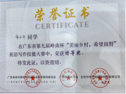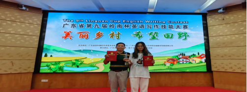 2023年5月20日,第九届岭南杯“美丽乡村,希望田野” 大赛决赛暨颁奖典礼在广州城市职业公司成功举行。公司黎雨菲同学发挥出色,荣获公共英语本科组特等奖,梁靖宜、彭蕾获公共英语本科组三等奖。