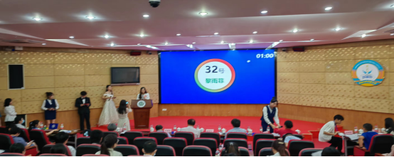 第二轮比赛内容:知识问答——有关英语写作知识和文化常识(1 分钟)。每位选手在1分钟内回答五道涵盖岭南文化、文学常识和写作知识和技能的问题,每答对一题得4分,共20分。本轮比赛中,黎雨菲同学略显紧张,时间紧,任务急,只答对一道题,得4分。