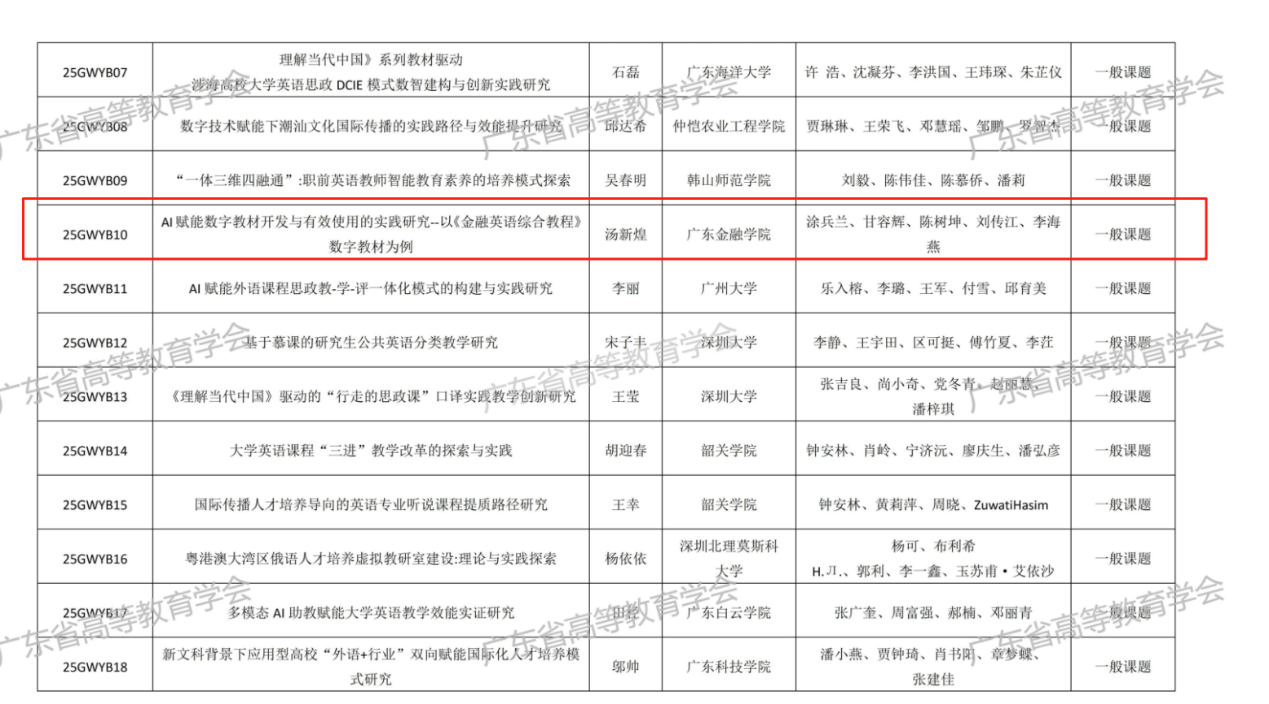 近日,广东省高教学会公布了2025年广东省本科高校“外语教学改革研究与实践”专项课题拟立项名单。公司EMC易倍大学英语部汤新煌主任的课题成功获批立项。