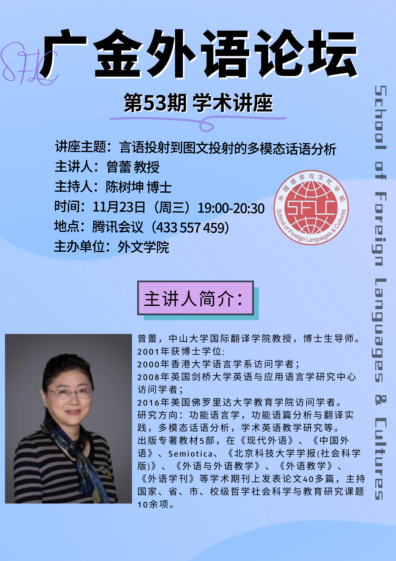 广金外语论坛第53期:言语投射到图文投射的多模态话语分析