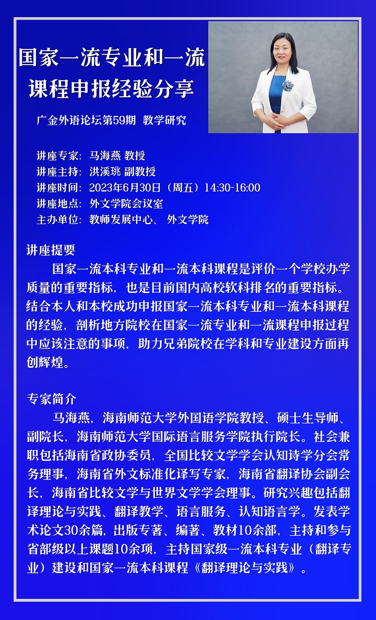 广金外语论坛第59期:国家一流专业和一流课程申报经验分享