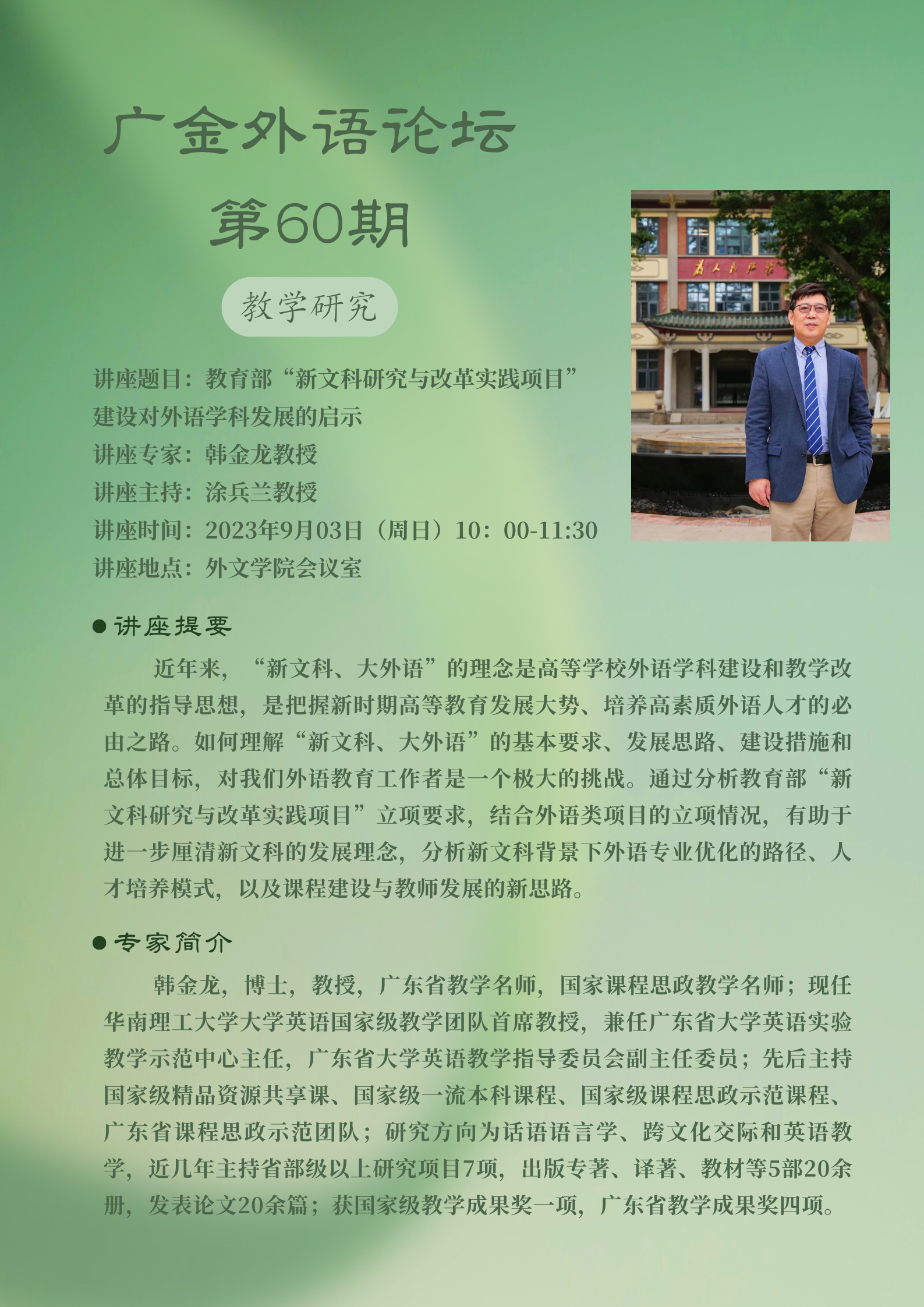 广金外语论坛第60期:教育部“新文科研究与改革实践项目”建设对外语学科发展的启示